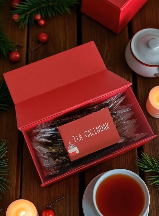 Nu vill vi presentera årets Tekalender som du bara måste kika in. December kanske tycks vara en himla grå och mörk månad, men detta kan vi ändra på.... Upptäck en ny tesort varje dag, och så vips är den tråkiga decemberdagen genast mycket roligare! Vi snackar en fullproppad tekalender med 24 olika sorters julte som bara väntar på att bli din. De 24 olika tesorterna kombinerar allt från klassiskt svart te till grönt, rooibos, örtte och fruktte. Perfekt om du vill upptäcka lite av allt.